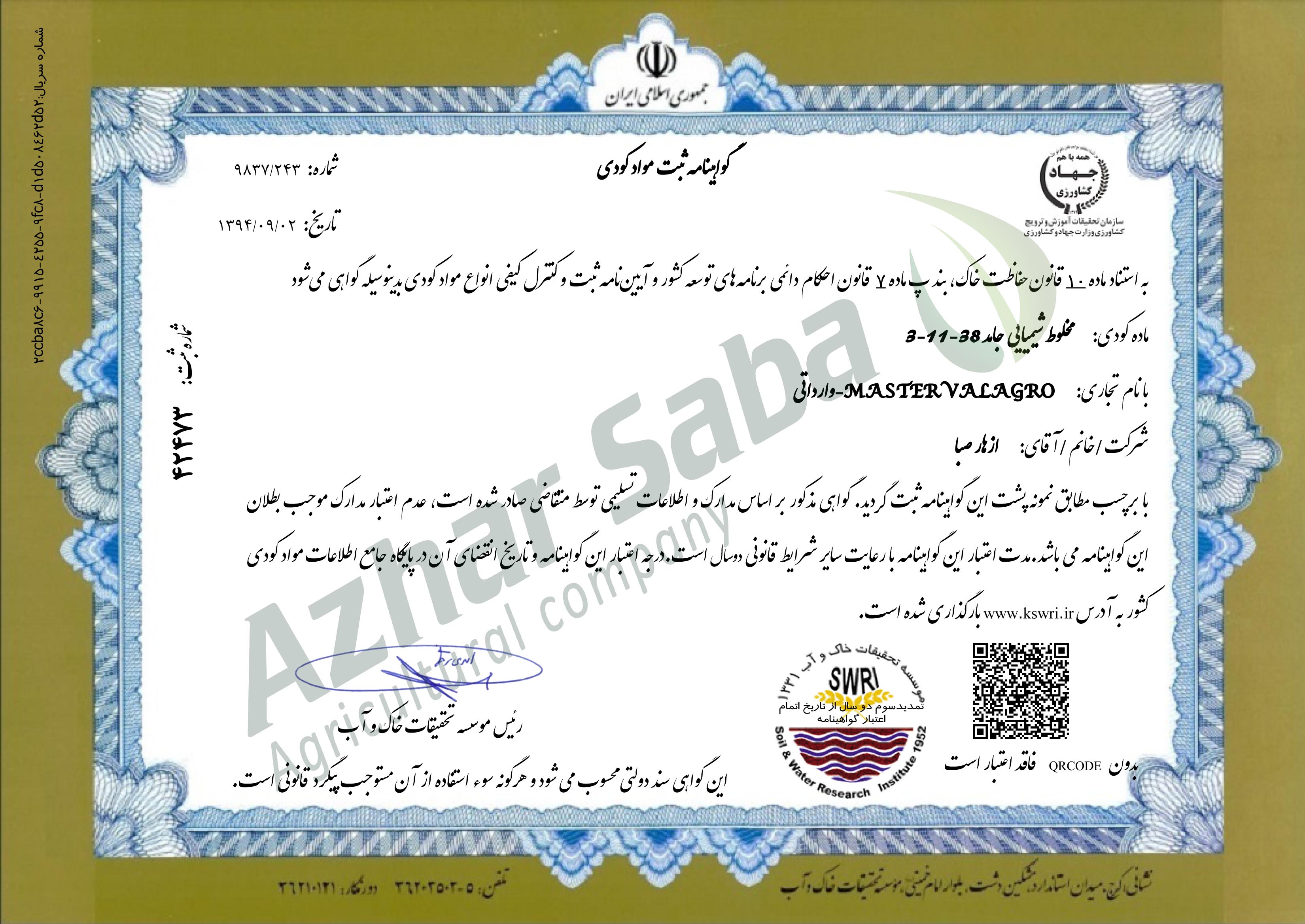 گواهینامه ثبت کودی والگرو منگنز گواهینامه ثبت کودی بروپلوس گواهینامه ثبت کودی کلبیت گواهینامه ثبت کودی مولیبیون گواهینامه ثبت کودی مگافول