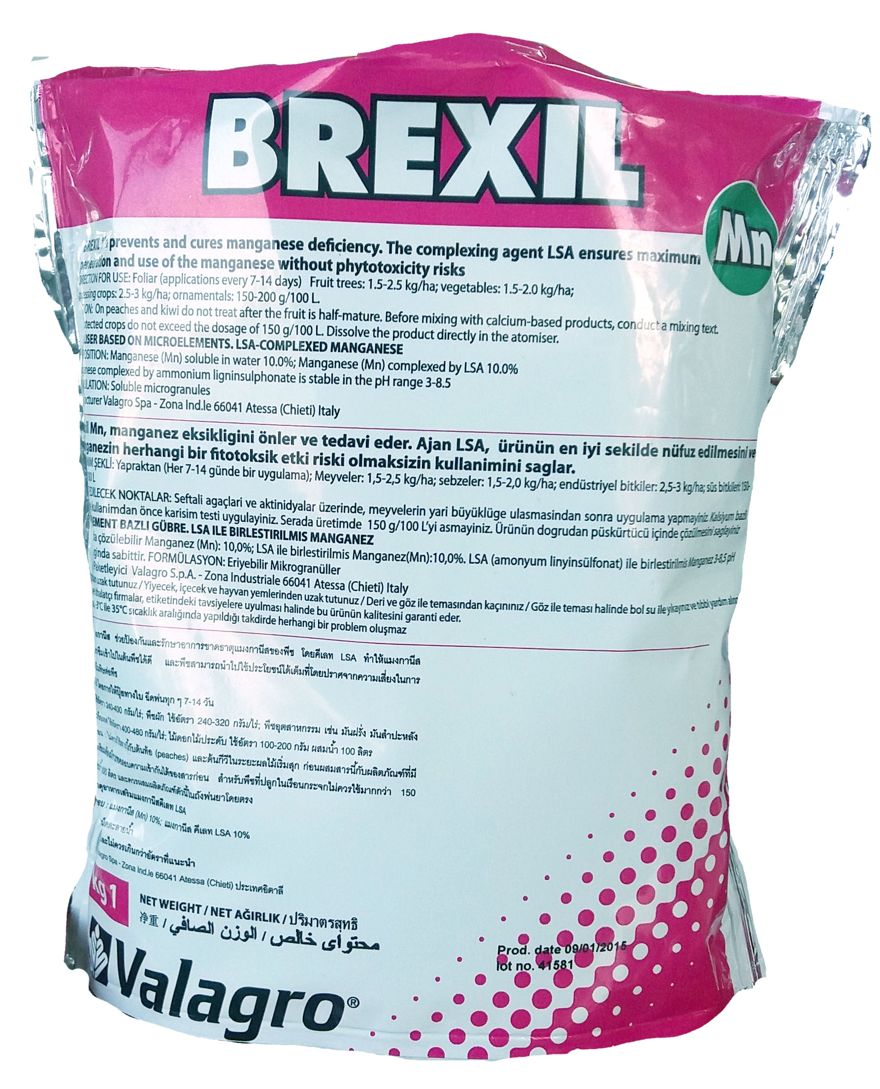 در خاکهای آهکی که غالب خاکهای کشور را شامل می شود جذب منگنز به علت pH بالا و هم به علت رقابت یونی با کلسیم کاهش می یابد. مصرف خاکی منگنز به علت تبدیل سریع به اشکال کمتر قابل استفاده خیلی کارا نمی باشد. منگنز در متابولیسم هیدرات های کربن، اسیدهای آمینه، تنفس، پدیده های فتوشیمایی و فتوسنتز ، تولید هورمون اکسین و ... در گیاه نقش دارد. برکسیل منگنز با داشتن 10% منگنز کلات شده با عامل کلات کننده لیگنوسولفونات آمونیوم می باشد . این کود به عنوان ترکیبی مناسب برای محلولپاشی در طول فصل رشد به منظور رفع و جلوگیری از کمبود عنصر منگنز بدون خطر برگ سوزی برای محصولات باغی، زراعی و گلخانه¬ای قابلیت استفاده دارد. بطور کلی محلولپاشی منگنز به علت نیاز کم گیاه به این عنصر و عدم امکان تغذیه مناسب از طریق خاک مصرف، مناسب ترین روش می¬باشد.
